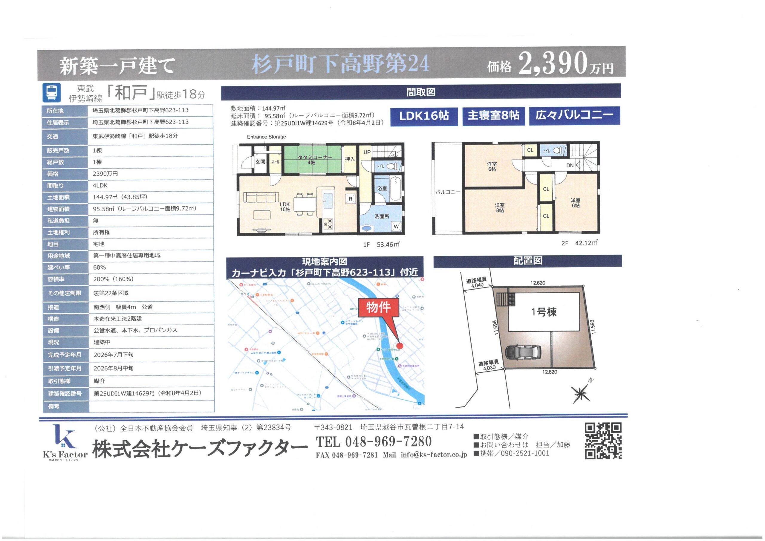 CONTENTS コンテンツ CONTENTS TOPCONTENTS販売物件新規新築一戸建て住宅情報公開 2026/04/17 新規新築一戸建て住宅情報公開 販売物件 杉戸町下高野の新築一戸建て住宅情報です。最寄駅「和戸」駅徒歩18分の物件です。敷地面積145㎡超ありゆったり、お庭もつくれる閑静な住宅地です。価格は価格は2,390万円で販売を開始致します。新築ご検討の方は是非ご覧ください。 一覧へ戻る